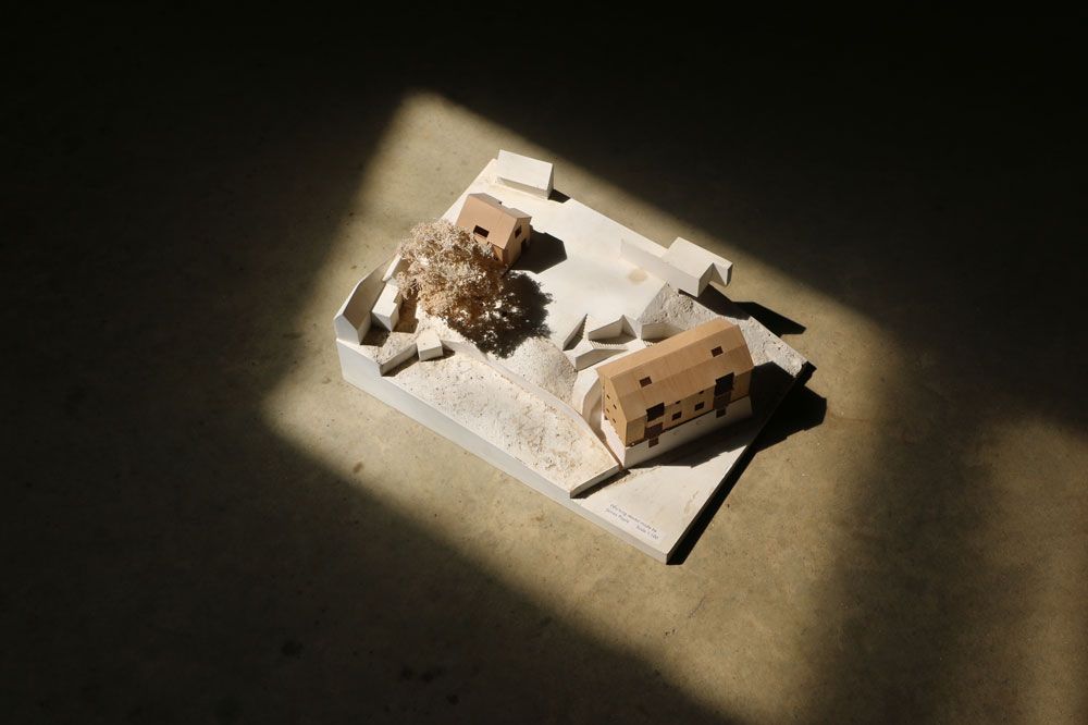This site next to the village church, one of the last remaining within the development boundary, proved impossible for mainstream house builders to apply their standard house plans to, being very restricted and steeply sloped. This presented the opportunity for a more unconventional design approach. Two studio flats and two maisonettes are contained within the main block with bridge access to all four. A small two bedroomed gate house at the entrance to the communal parking area, shields the site from a major road. The construction involved the use of salvaged materials (the clay roof tiles) and local stone (from Lambs quarry at West Hoathly).